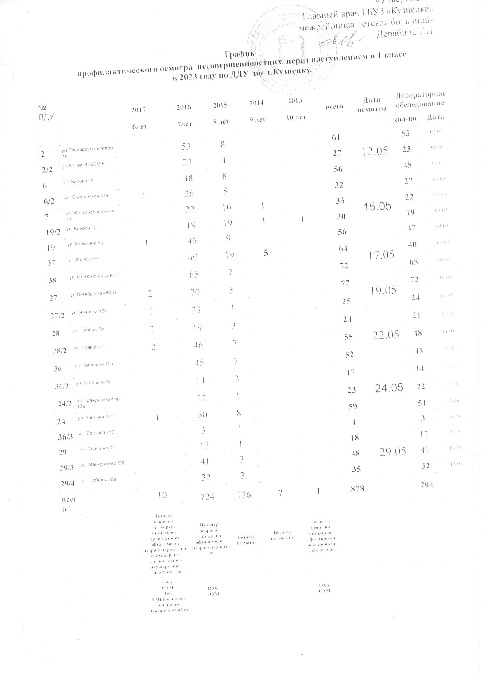 - График профилактических осмотров несовершеннолетних по Кузнецкому району в 2026 году