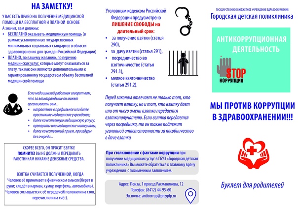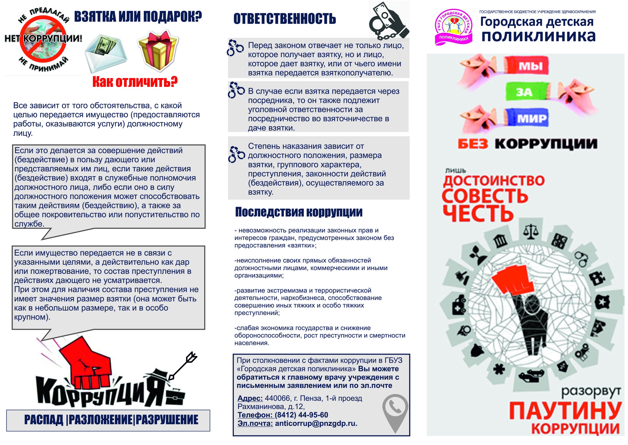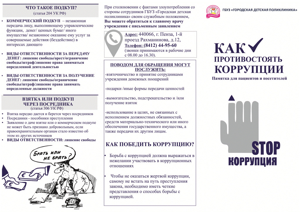 - Памятка по противодействию коррупции для работников ГБУЗ «Городская детская поликлиника» [Скачать оригинал]