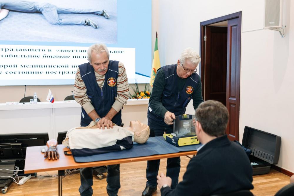 Владимир Долгов, заведующий учебно-методическим отделом Центра медицины катастроф, провел мастер-класс по оказанию первой помощи, где наглядно продемонстрировал алгоритм действий при несчастных случаях на производстве, при травмах и отравлениях.